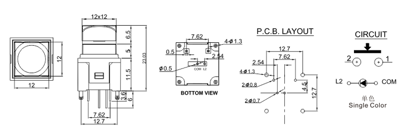 帶燈按鈕開關(guān),LED燈有單燈,雙燈以及RGB全彩,按鍵尺寸有多種規(guī)格,可根據(jù)各大需求任意定制各種絲印,這類按鍵常用于廣播控制臺(tái),視頻音頻處理器等。