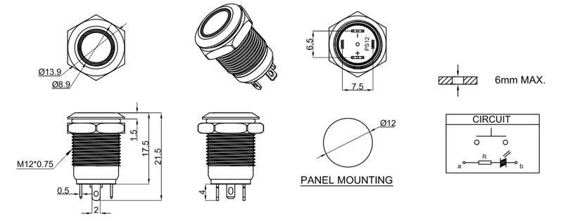 ??????安裝尺寸:Φ12mm